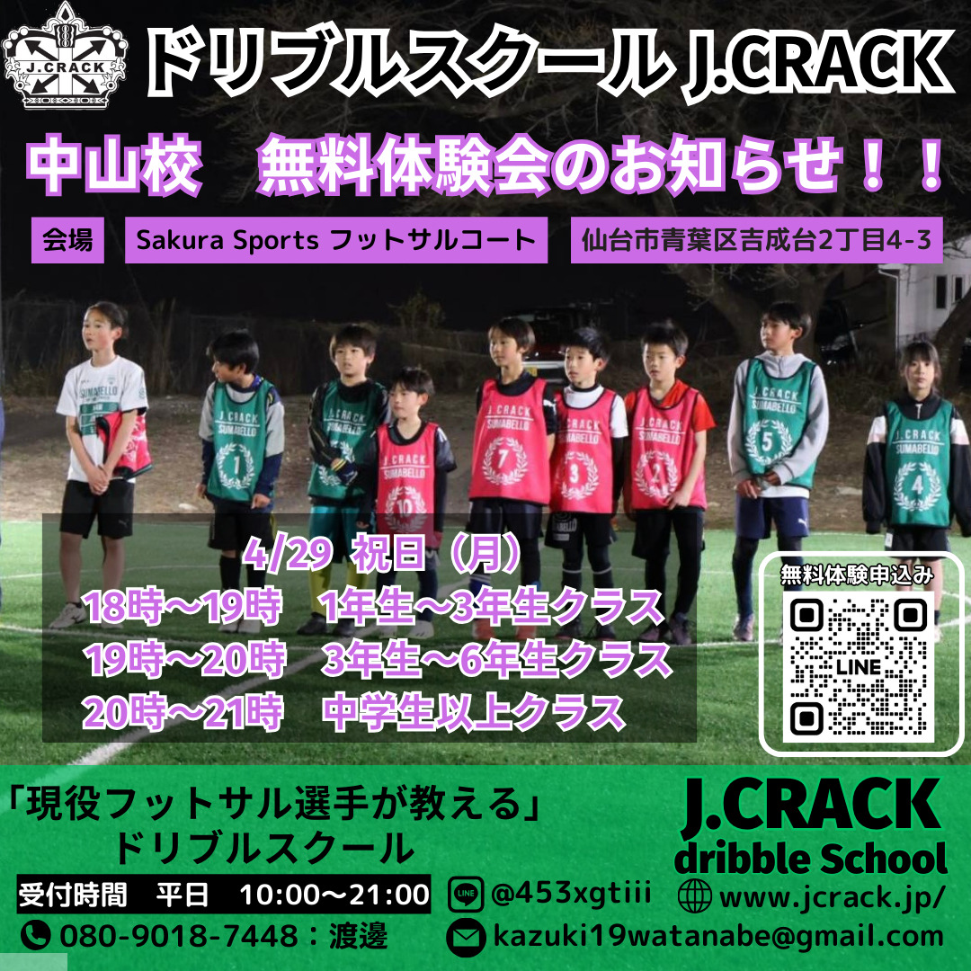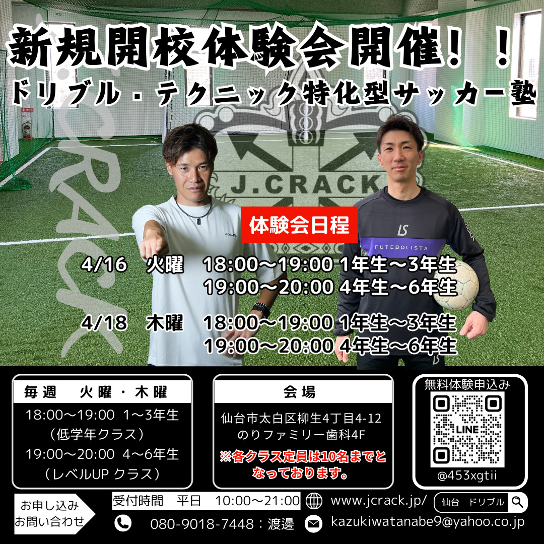 ドリブルスクールJ.CRACK宮城野校にて無料体験会を開催します。